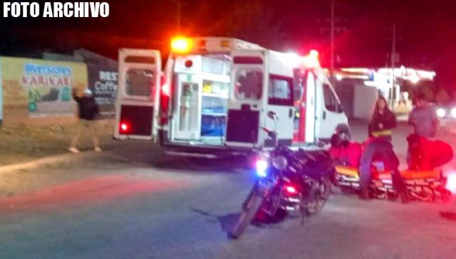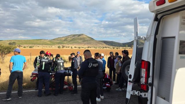 JEREZ, ZAC.- Un motociclista colisionó contra un automóvil en movimiento y sufrió lesiones de gravedad, por lo que paramédicos lo