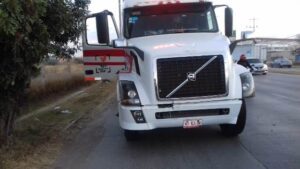 El percance fue provocado por Miguel Ángel Ramos Galeana, de 30 años, que a su cargo traía un tráiler Volvo, en color blanco, con razón social “Transportes SAM” y con placas de circulación 67AJ3H del Servicio Público Federal.