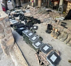 Además, 18 chalecos tácticos; 23 placas balísticas; 12 fornituras; 50 pantalones camuflados; 46 camisolas camufladas; una chamarra camuflada; 10 básculas grameras; 2 selladoras para bolsa nylon, y un vehículo.