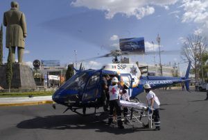 Explicó que para convertir el helicóptero en una ambulancia aérea, el personal de servicios aéreos de la dependencia invierte 20 minutos, además de que los pacientes son atendidos por un médico y un paramédico especializados que se encargan de mantenerlos estables hasta llegar a su destino.