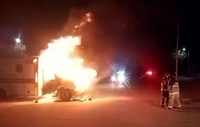 Elementos de Protección Civil y Bomberos así como oficiales de la Policía Municipal acudieron al sitio y encontraron el vehículo de la UAZ envuelto totalmente en llamas, por lo que comenzaron las maniobras para controlar y sofocar el fuego.