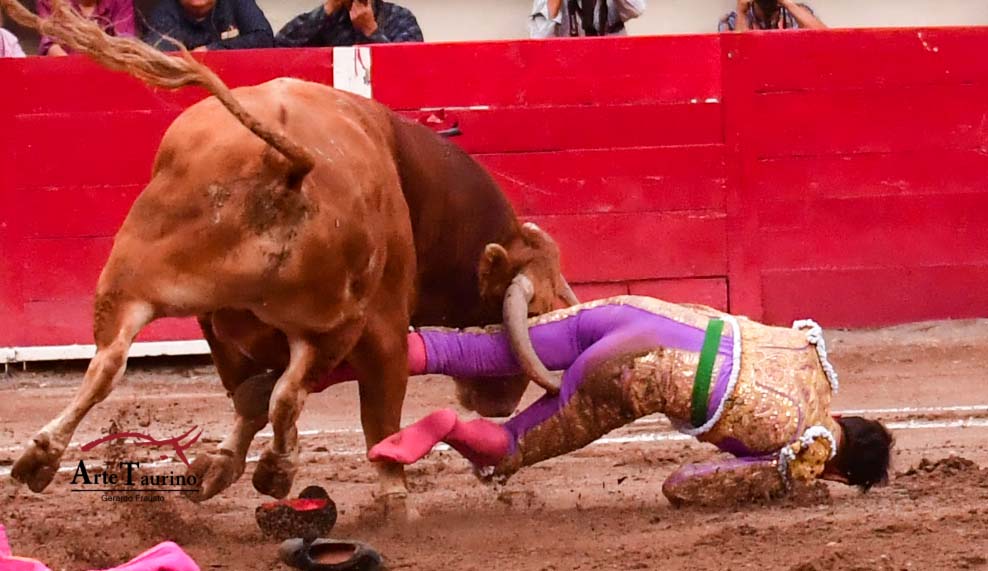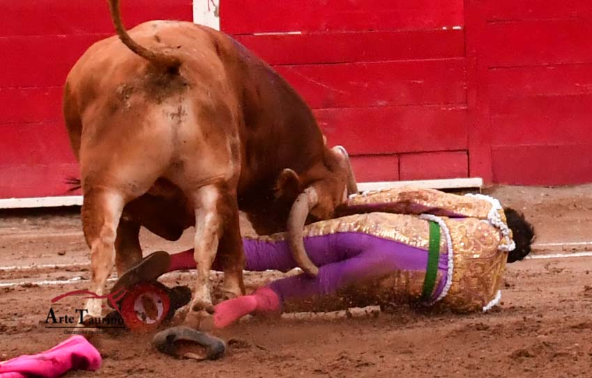 Al segundo de la ganadería de La Joya de nombre «Pepe», el hidrocálido lo recibió con tres lances a pies juntos y remata con una media verónica. El quite fue por gaoneras, en el cual el toro lo trastabilló teniéndolo a su merced en el suelo infiriéndole una grave cornada en la cara posteromedial de muslo derecho, fue ingresado a la enfermería de la plaza donde ya no se le permitió salir, y posteriormente fue trasladado al hospital para ser intervenido.