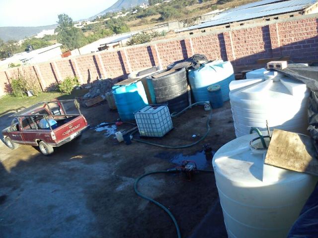 La construcción tiene aproximadamente 50 metros de frente por 70 de fondo y ahí se localizaron nueve contenedores de diferentes tamaños en los que había hidrocarburo, que en total son aproximadamente 80 mil litros de hidrocarburo.
