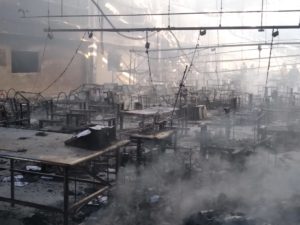 Al lugar de los hechos, arribó el propietario de la fábrica, quien señaló que el fuego consumió maquinaria, materia prima, y una parte considerable del área de oficinas por lo que valuó los daños en 15 millones de pesos aproximadamente