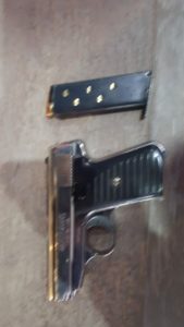 Los oficiales procedieron a realizar una revisión a los ocupantes, sin que se encontraran objetos o sustancias ilícitas en su persona, sin embargo al inspeccionar la camioneta, los policías encontraron un arma de fuego, cromada, calibre .380 con 6 cartuchos útiles; así como dos bolsas con droga cristal con 33.7 gramos aproximadamente y un envoltorio con 15.8 gramos de cannabis.