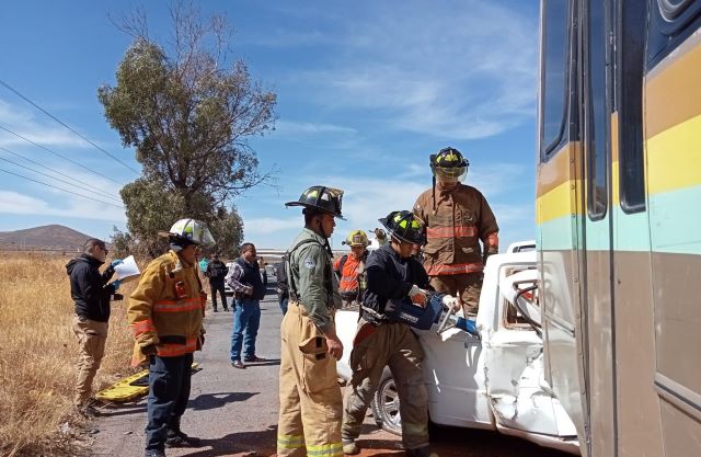 Los dos ocupantes de la camioneta quedaron prensados en la cabina, por lo que fue necesaria la intervención de elementos y paramédicos de las Coordinaciones Municipal y Estatal de Protección Civil, que se encargaron de rescatarlos con ayuda del equipo conocido como “las quijadas de la vida”.