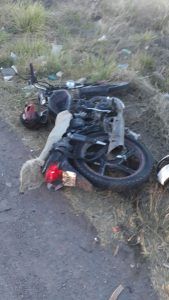 PABELLÓN DE ARTEAGA, AGS.- El domingo, se registró un desigual choque en la carretera federal 45 norte a la altura de Pabellón de Arteaga, el cual fue protagonizado por una combi de transporte foráneo y una motocicleta, el cual dejó como saldo una persona lesionada.