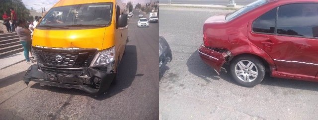 El otro vehículo implicado en la colisión era una camioneta de transporte escolar marca Nissan, modelo 2019, en color amarillo y con placas AD-1159-A, dirigida por Juana “N”, de 43 años, que transportaba a los 14 menores de edad.
