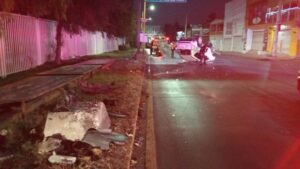 La fémina la conducía por el segundo anillo, en dirección de norte a sur y a exceso de velocidad, por lo que frente a la calle Tokio perdió el control del volante hacia el lado izquierdo y se subió al camellón central, donde se impactó fuertemente contra la base de concreto de un señalamiento vial.