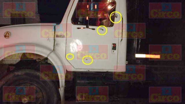 Además, los proyectiles hicieron blanco en la cabina y la parte posterior del camión, dejándole varios orificios.