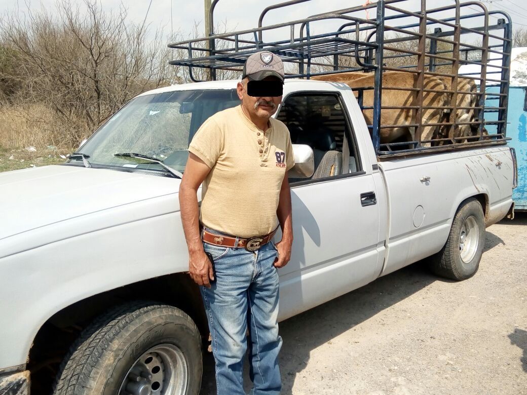 TEPEZALÁ, AGS.- Elementos de la Secretaría de Seguridad Pública del Estado en coordinación con policías municipales de Tepezalá llevaron a cabo la detención de un individuo que tripulaba una camioneta con reporte de robo en la que transportaba semovientes.