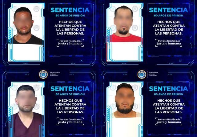 AGUASCALIENTES, AGS.- La Fiscalía General del Estado de Aguascalientes obtuvo una sentencia condenatoria de 80 años de prisión en contra de Aldo Giovanni “N” alias “El Ojitos”, Juan Manuel “N”, Michael “N” y Samuel “N”, quienes fueron declarados culpables por hechos que atentan contra la libertad de las personas.