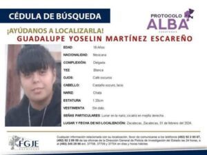 En la capital zacatecana desapareció Guadalupe Yoselín Martínez Escareño, de 16 años de edad, durante la tarde del lunes 5 de febrero.