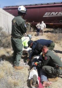 Los otros empleados solicitaron ayuda a los servicios de emergencia, por lo que al sitio acudieron elementos de Protección Civil Estatal, que encontraron a uno de los empleados debajo de uno de los vagones y al revisarlo confirmaron que ya había fallecido.