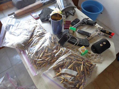 En este operativo también fueron aseguradas nueve armas de grueso calibre y dos cortas, 52 cargadores, 538 cartuchos útiles, dos máscaras antigas, 36 fornituras para pechera, tirantes, cinturón y portacargador, cuatro cinturones tácticos, 12 fundas para arma, dos vehículos y tres semirremolques.