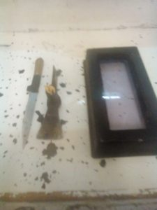 Al percatarse de la presencia policial, Sergio de 26 años de edad, intentó agredir a los uniformados utilizando un hacha y un cuchillo, comenzó a lanzarles varios viajes, sin embargo utilizaron el escudo balístico de los chalecos para protegerse por lo que resultó dañado.