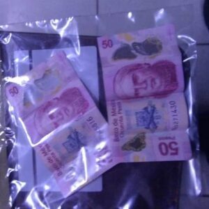 Por otra parte, al individuo que le entregó los billetes de 50 pesos, mismo que dijo responder al nombre de Gustavo “N”, de 29 años de edad, le detectaron entre sus pertenencias una bolsa de plástico transparente que contenía hierba verde con las características propias de la marihuana, que dio un peso aproximado de 25 gramos.