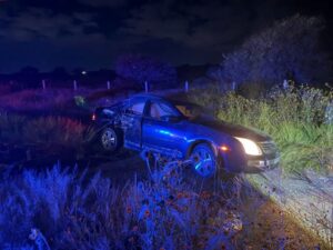 Tanto el coche como la moto también salieron de la carretera y los dos jovencitos fueron eyectados de ella y quedaron tirados en el acotamiento.