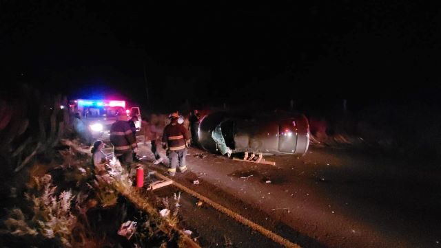 CALVILLO, AGS.- Dos personas resultaron lesionadas, una de ellas de gravedad, tras la aparatosa volcadura del automóvil en que viajaban en el municipio de Calvillo.