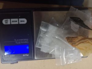 De esta manera, en una de las puertas laterales del automóvil, fue detectada una pequeña bolsa, que a su vez contenía 13 envoltorios de droga crystal, con un peso aproximado de 5.9 gramos.