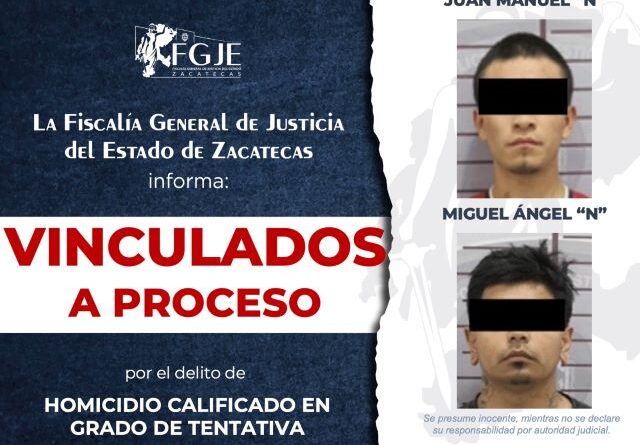 FRESNILLO, ZAC.- La Unidad de Delitos Graves de la Vicefiscalía Distrital de Fresnillo logró la vinculación a proceso de Juan Manuel “N” y Miguel Ángel “N” por el delito de homicidio calificado en grado de tentativa en agravio de una persona.