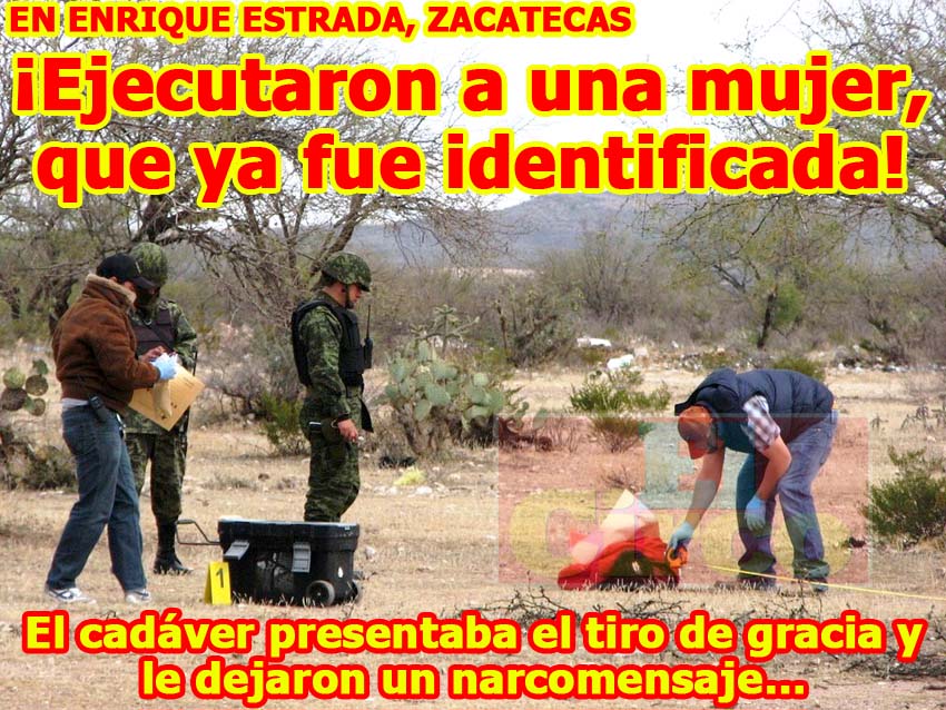 ZACATECAS, ZAC.- Una mujer fue ejecutada y su cuerpo, con el llamado tiro de gracia, fue localizado en un camino que conduce al municipio de Enrique Estrada con la comunidad El Peñasco.