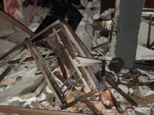Los elementos de PC observaron colapsados los dos locales comerciales de venta de alimentos, uno de ellos con daños considerables a causa de la explosión.