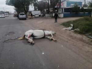 ¡En Aguascalientes hombre que montaba un caballo murió embestido por un automóvil!