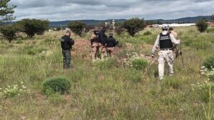 GUADALUPE, ZAC.- Con el apoyo de una unidad K9, personal de Gobierno del Estado y de la Fiscalía General de Justicia del Estado llevó a cabo una prospección forense y búsqueda de personas en vida en comunidades de San Isidro, Bocanegra, San Jerónimo y La Zacatecana, pertenecientes al municipio de Guadalupe.