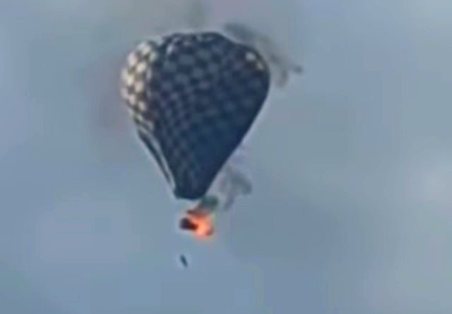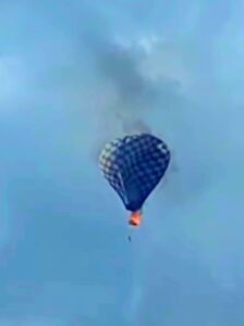 El globo despegó en el campo de morisma, pero durante su recorrido se incendió, por lo que dos personas sufrieron lesiones en primer grado.