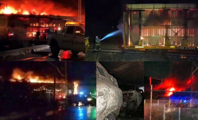 ¡En Guadalupe incendiaron vagón del tren con 20 autos nuevos; autoridades investigan posible ataque con bomba molotov!