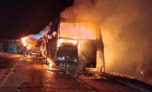 La circulación vehicular tuvo que ser cerrada a causa del accidente e incendio y debido a la densa columna de humo, que impedía la visibilidad.
