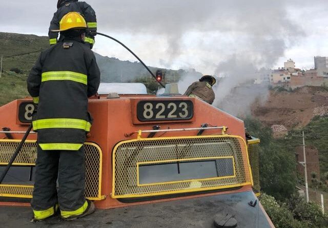 ZACATECAS, ZAC.- Una locomotora se incendió y provocó la movilización de los bomberos para apagar las llamas.