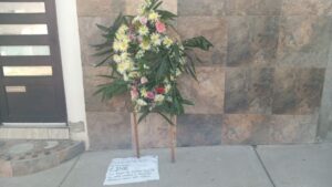 AGUASCALIENTES, AGS.- El Cártel Jalisco Nueva Generación (CJNG) amenazó a dos mandos de la Secretaría de Seguridad Pública Municipal al dejarles afuera de sus casas dos coronas de muerto junto con narco-mensajes escritos en una cartulina.