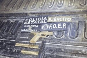 Al revisar a los tres sujetos, a uno de ellos le encontraron y aseguraron un arma de fugo calibre 9 milímetros, con un cargador y 19 cartuchos útiles, así como una bolsa con 40 cartuchos del mismo calibre.