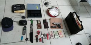 Mientras que los elementos de la Policía Estatal lograron la captura del segundo involucrado, el cual intentó esconderse debajo de un camión estacionado, el cual fue identificado como Luis Fernando, de apenas 15 años de edad, a quien le aseguraron 24 mil pesos en efectivo, así como 40 billetes de 100 dólares falsos, un cuchillo, cuatro relojes, un acumulador y un reproductor de DVD, entre otras cosas.