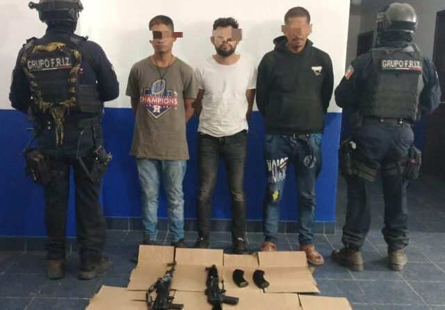 Efectivos de las Fuerzas de Reacción Inmediata Zacatecas (FRIZ) de la Policía Estatal Preventiva, Ejército Mexicano y Guardia Nacional, detuvieron a Nazario Gilberto “N”, de 19 años de edad, originario de Jalisco; Jesús Armando “N”, de 25 años, oriundo de Villa Hermosa, Tabasco; y José Ángel “N”, de 39 años, proveniente de Nayarit.