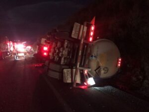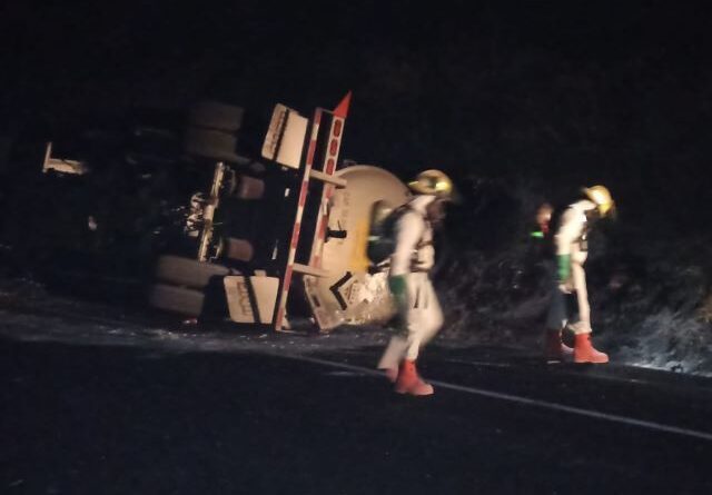 ¡En San Juan de los Lagos aparatosa volcadura de una pipa cargada con sosa cáustica!