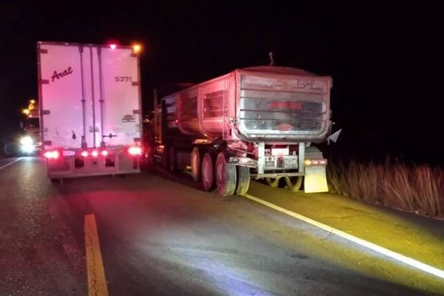 En el lugar colisionaron dos tractocamiones de la marca Kenworth, que terminaron con daños en las cabinas sobre la cinta asfáltica, por lo que hubo afectación en la circulación vehicular.
