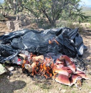 También se ubicaron utensilios de cocina, ropa y diversos artículos de uso personal, que fueron destruidos para evitar su reutilización.