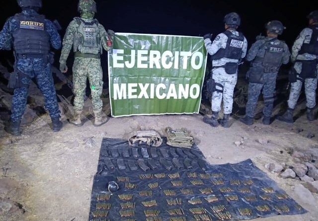 Como resultado del operativo interinstitucional también se aseguró diverso material ilícito, como 20 cargadores de diferentes calibres, 490 cartuchos útiles, 26 granadas y 2 chalecos balísticos color arena con camuflaje.