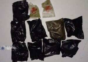 Al darle alcance, los oficiales le realizaron una inspección física en la que le encontraron 11 envoltorios de plástico transparentes y negros que contenían marihuana.