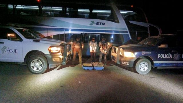 ZACATECAS, ZAC.- A bordo de un autobús de la línea ETN, Raúl “N”, de 23 años, viajaba en el tramo Villa de Cos–Saltillo de la carretera federal 54 cuando fue detenido por elementos de Policía de Investigación en coordinación con Policía Estatal.