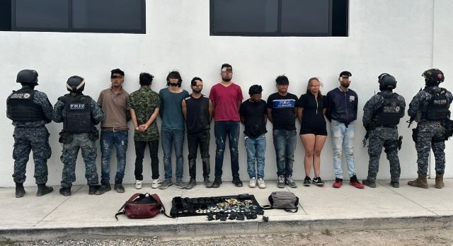 Los detenidos, una mujer y ocho hombres, fueron identificados como Alejandra “N”, de 33 años de edad; Silverio “N”, de 19 años; Joel Alonso “N”, de 20 años; Érick Enrique “N”, de 22 años; Emanuel “N”, de 26 años; Bernal “N”, también de 26 años, todos originarios de Durango.