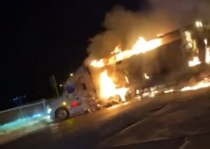 En la carretera de cuota Zacatecas-Aguascalientes, a la altura de Ciudad Cuauhtémoc, sujetos armados le prendieron fuego a un tráiler, además de que le robaron una camioneta a una familia que regresaba a Aguascalientes procedente de Mazatlán, Sinaloa, e igualmente la incendiaron para finalmente escapar.