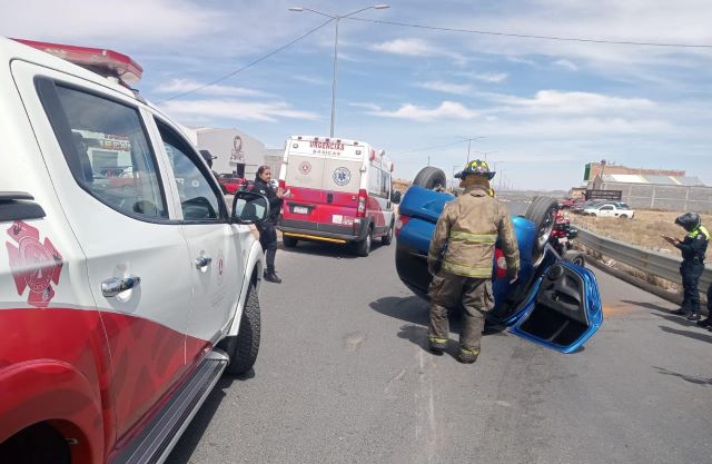 Al sitio acudieron paramédicos y rescatistas de la Coordinación Estatal de Protección Civil, que encontraron volcado sobre su toldo un coche Clío, en color azul.