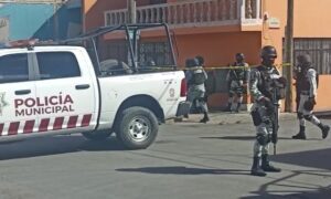 Los elementos de Seguridad Pública resguardaron el negocio-escenario de los hechos y hasta cerraron una de las puertas para impedir que el cuerpo del abatido fuera observado por las personas que pasaban por el lugar.