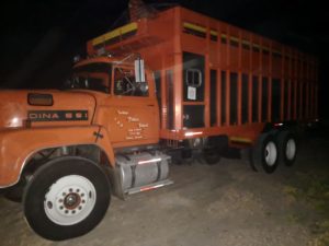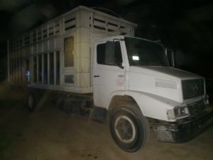 Cuando ellos les reclamaron esa situación comenzaron a golpearlos y comenzaron a subir a los animales a los camiones, al revisar el interior del rancho encontraron abandonados un camión marca Dina naranja con placas de circulación del Estado de Hidalgo, un camión marca Dina rojo, con placas del mismo estado y un Mercedes Benz blanco, con matrícula del Estado de México, a bordo de los cuales había un total de 39 semovientes.