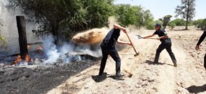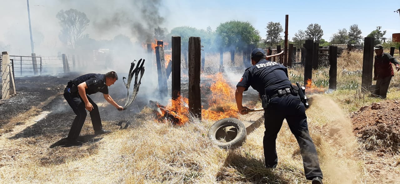 PABELLÓN DE ARTEAGA, AGS.- En el municipio de Pabellón de Arteaga, integrantes del cuerpo de Bomberos del Estado en una acción coordinada con bomberos de dicha cabecera municipal, así como policías estatales y municipales, sofocaron un incendio que consumió alrededor de 2 hectáreas de pasto seco. Gracias a la rápida intervención y la coordinación entre los uniformados, se logró evitar que las llamas llegaran a los domicilios cercanos.