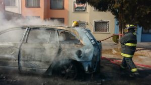 En el servicio de emergencia se recibió el reporte de que en la avenida Viñedos Guadalupe, frente al domicilio marcado con el número 150 del fraccionamiento Viñedos Rivier del Municipio San Francisco de los Romo, se estaba incendiando un automotor, por lo que inmediatamente se trasladaron al punto referido.